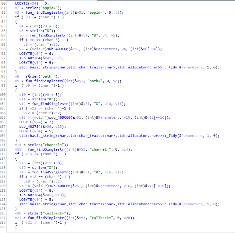 接着依次解析appid、path、channel、callback等参数,每个参数以&分割,Exp格式如下: