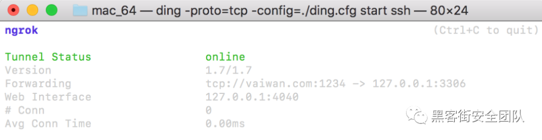 cd windows_64ding -config=ding.cfg -subdomain=abc 8080MAC执行以下命令: