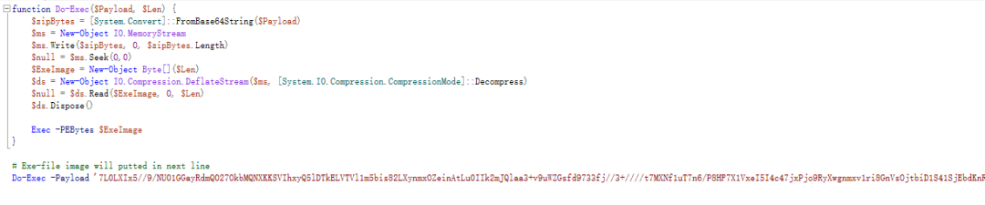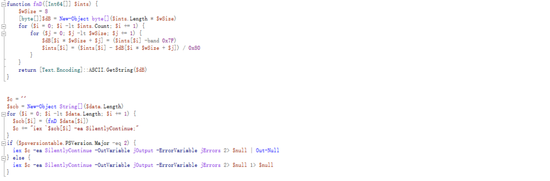 4.解密第一个数组数据之后,是一个PowerShell加载程序,可以加载代码到进程中执行,如下所示:
