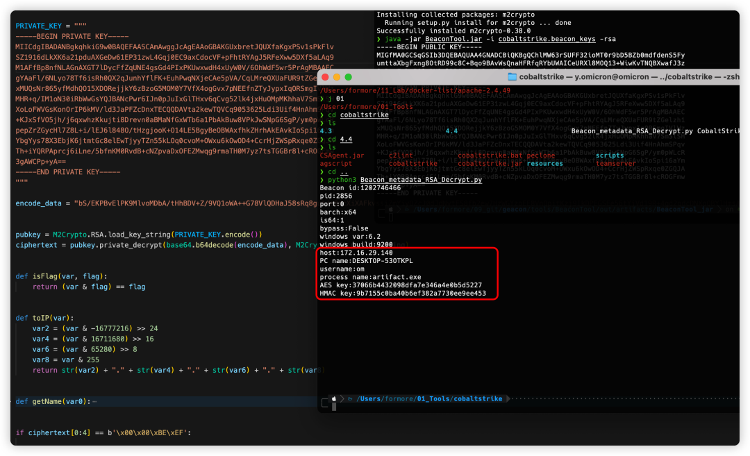 随后RSA解密元数据,并且按照代码中的格式解析,就可以计算出 AES 的 key 和一些额外信息