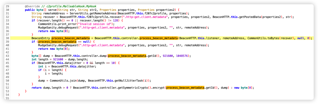 首先我们反编译cobaltstrike.jar找到 HTTP Beacon每次回连发送元数据请求时使用的方法,Cobalt Strike关于Beacon GET处理的核心代码在BeaconHTTP里。