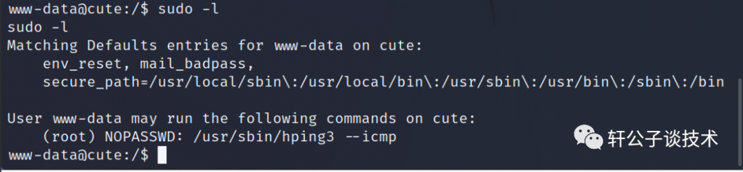 # 先获取python的shell bash反弹的shell# 默认权限问题输入sudo 不会弹出密码框而是直接退出python3 -c "import pty;pty.spawn('/bin/sh')"