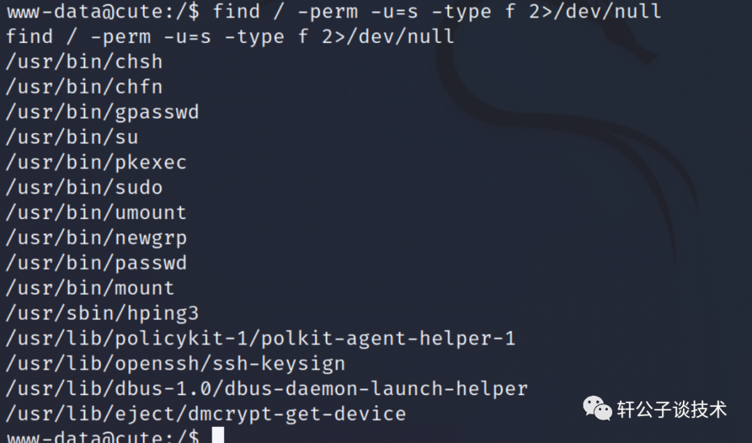 find / -perm -u=s -type f 2>/dev/null使用hping3 进行提权