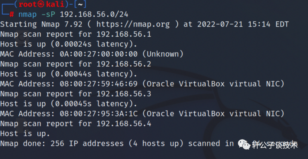 扫描 192.168.56.0/24