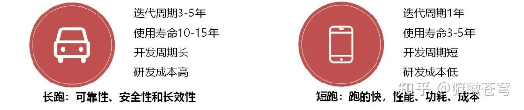 汽车的迭代速度可能各家有所不同,原则上也都是1年一小改,3年一大改,5年一换代,开发周期较长,通常24-36个月,研发成本较高,使用寿命在8-10年左右,因此汽车芯片的迭代周期也相对较长。