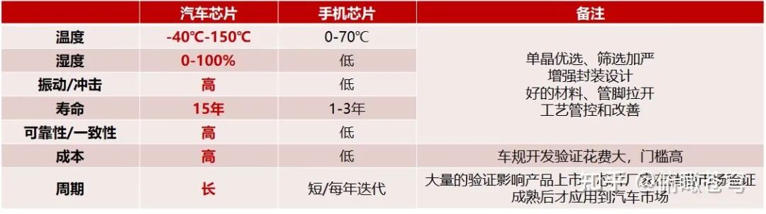其中手机芯片属于消费级、汽车芯片属于车规级,手机芯片与汽车芯片的应用场景不同,设计侧的重点也不尽相同,汽车芯片要求要高于手机芯片。