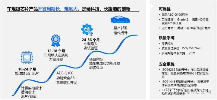 汽车芯片较手机芯片开发周期长,难度大,价格高。一颗汽车芯片从设计流片、车规认证、车型导入验证、到量产装车,通常需要3-5年的时间。