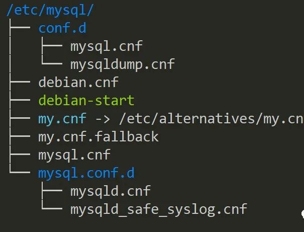 那我们在此文件编辑mysql的配置,发现是可以失效的,它包含于/etc/mysql/my.cnf文件,所以编辑mysql配置的时候就编辑/etc/mysql/mysql.conf.d/mysql.conf.d文件即可。
