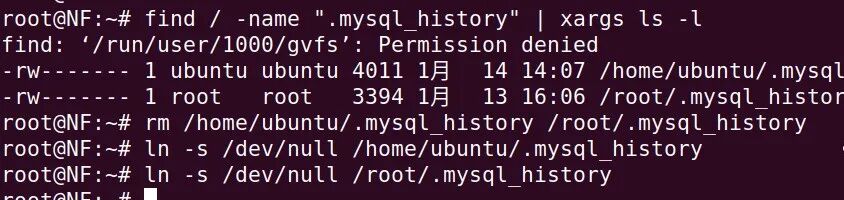 检查所有.mysql_history文件是否链接到dev/null,若没连接到,则以root用户执行如下命令: