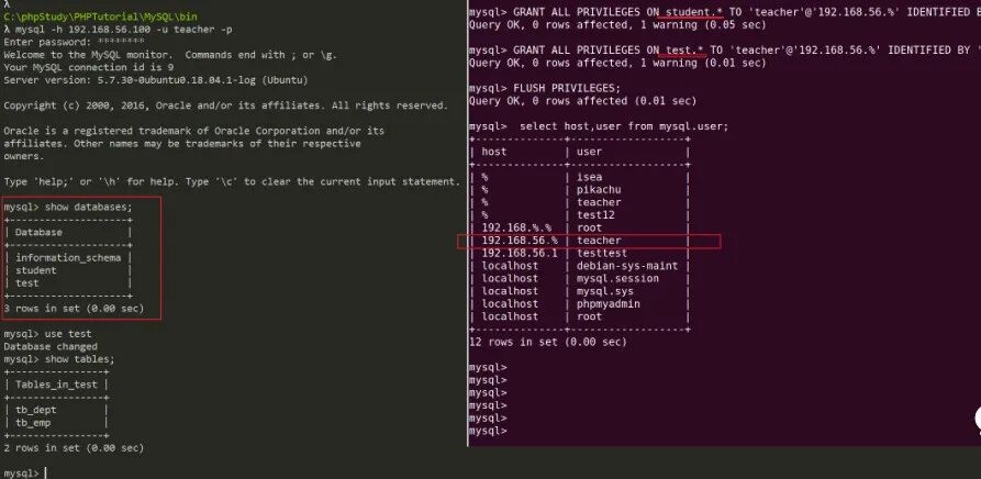 GRANT ALL PRIVILEGES ON student.* TO 'teacher'@'192.168.56.%' IDENTIFIED BY 'Admin123' WITH GRANT OPTION;