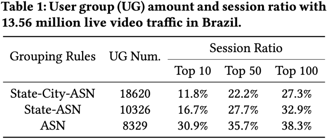 (2)面向用户群组的机器学习算法扩展性较差。以巴西为例,如果以“国家-州-AS号”为标准进行用户群组划分,则可获得18620个用户群组,而前100个用户群组仅能覆盖27.3%的视频直播会话,如表1所示。在这种情况下,若为每个用户群组配置单独的神经网络模型,则将会带来巨大的计算与存储开销。