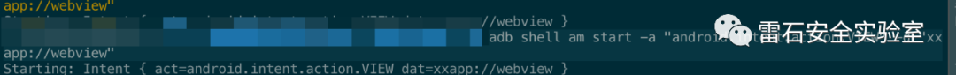 adb shell am start -a "android.intent.action.VIEW" -d "xxapp://webview"或者通过浏览器去拉起。
