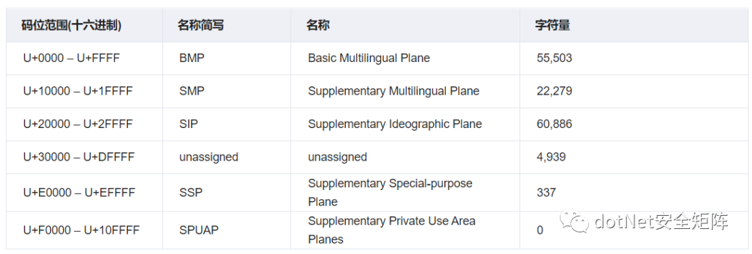 Unicode标准中,码位的表示方法通常是使用它们的十六进制,并加上U+前缀。码位的分类方法多种多样。我们通过下表来阐明Unicode标准使用的几种平面和一些术语。