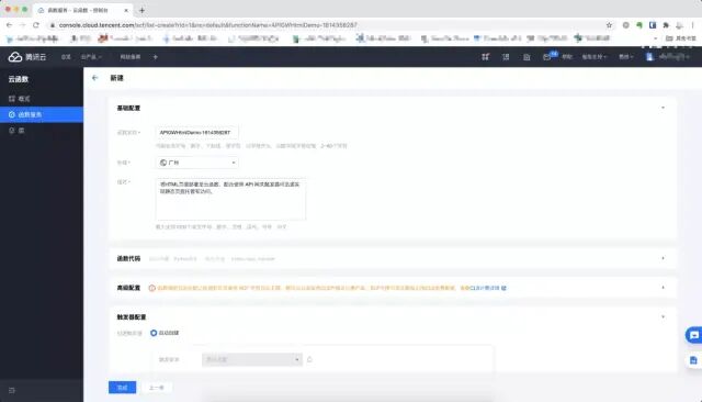 到这里也可以全部默认,函数名称和地域可以自己自由发挥,然后点击完成。
