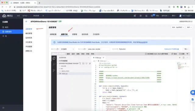然后把下面代码替换 index.py 的代码,点击部署。