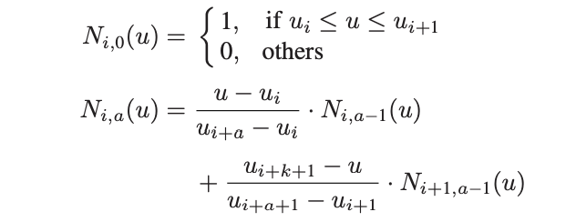 nd_i是由神经网络模型规划的网格单元;N_i,a(u)是一个具有a个多项式的基函数;u是一个非减参数,称为结向量。基函数可以从Cox-deBoor递归方程中导出。