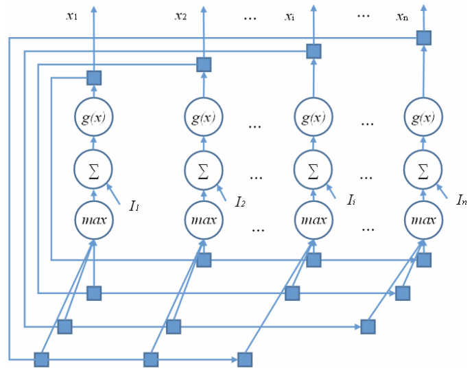 图3为模型的拓扑图,这是一个离散的Hopfield神经网络。神经元只连接到最高的突触强度,并记录神经活性值的传播方向。每个神经元的活性值的计算可以并行执行,并保留到达目标位置的时间梯度。