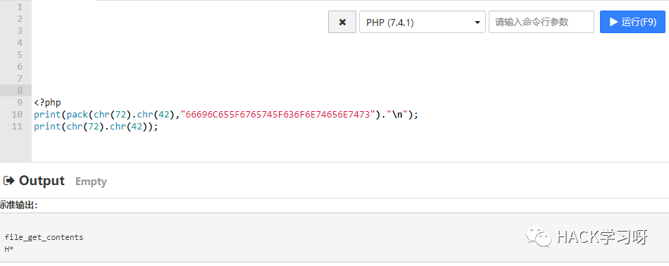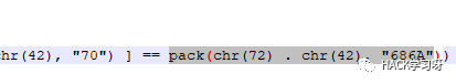 pack(chr(72) . chr(42), "70") 解码后等于p