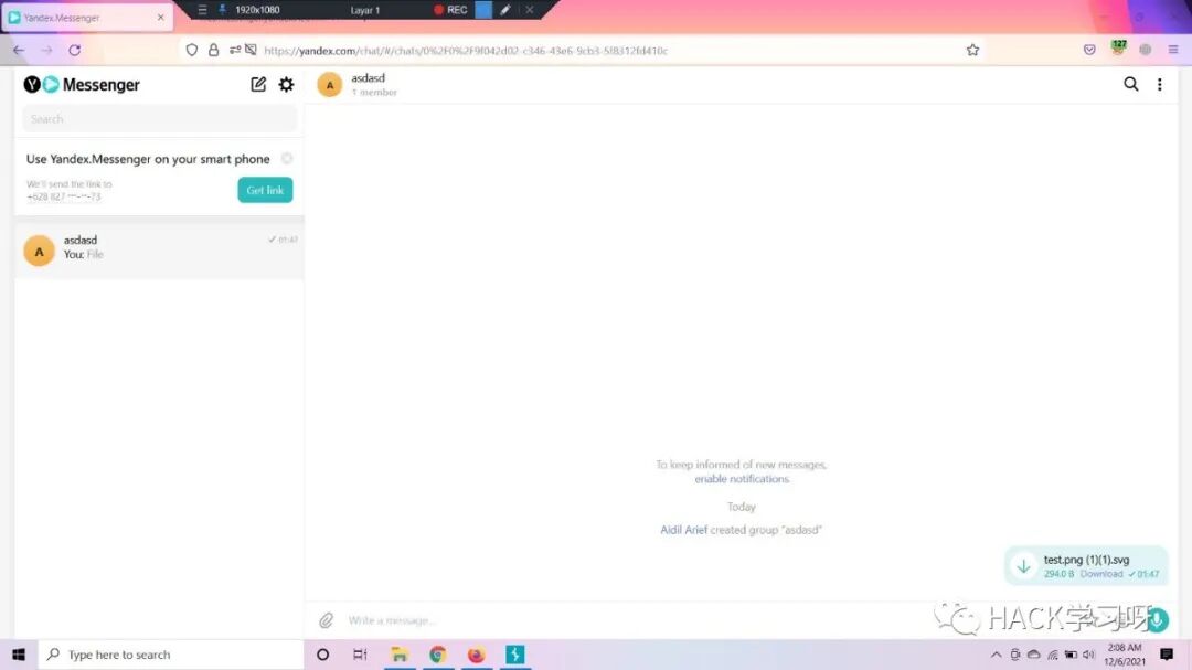 接下来,我创建了一个聊天组,然后发送了包含上述SVG文件的附件。
