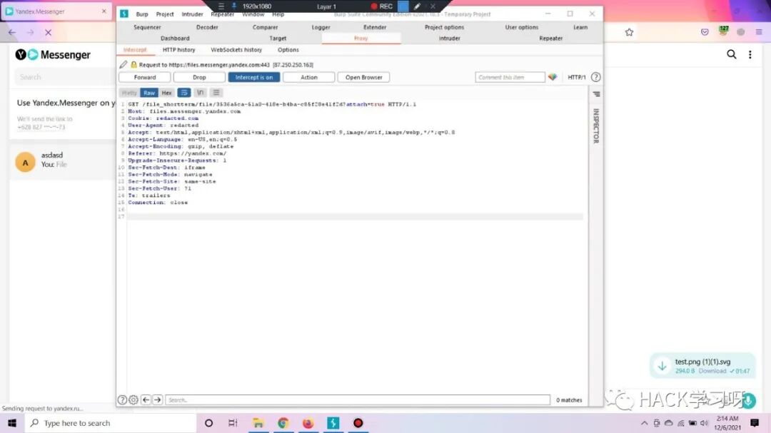 所以,在请求下载文件时,我打开了Burp Suite,以便我可以抓到文件下载位置的URL。结果如下: