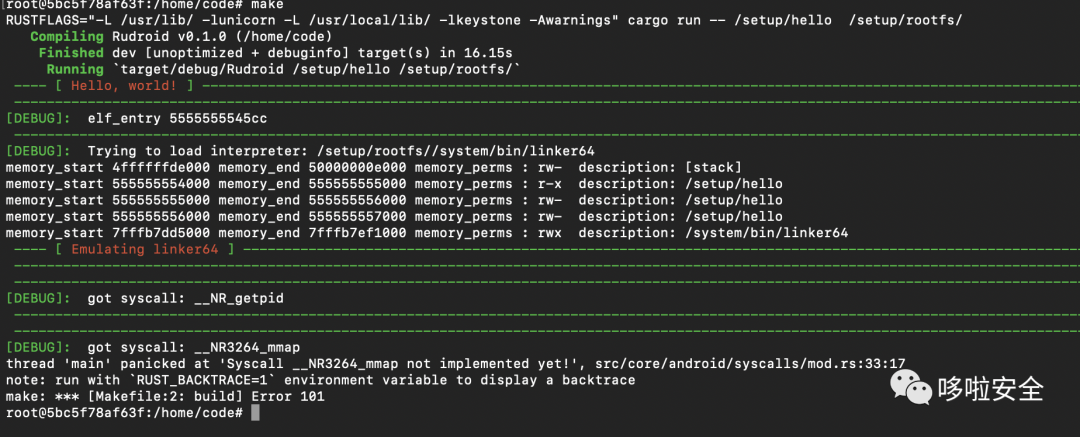 build:RUSTFLAGS="-L /usr/lib/ -lunicorn -L /usr/local/lib/ -lkeystone -Awarnings" cargo run -- /setup/hello /setup/rootfs/