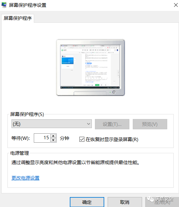 进入“控制面板->显示->屏幕保护程序”:启用屏幕保护程序,设置等待时间为“5分钟”,启用“在恢复时使用密码保护”。