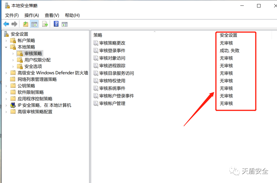 “审核策略更改”设置为“成功”和“失败”都要审核