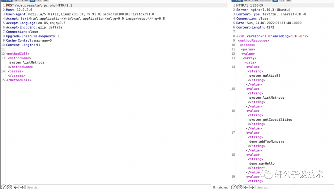有一个xml-rpc这个接口可以使用,可以理解为 存在xxe漏洞。
