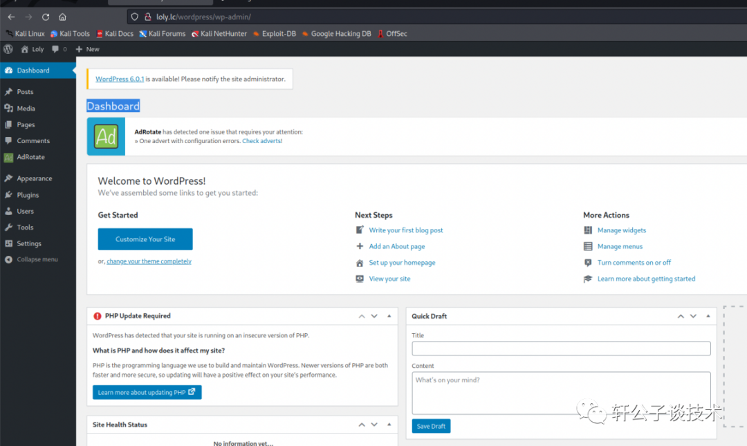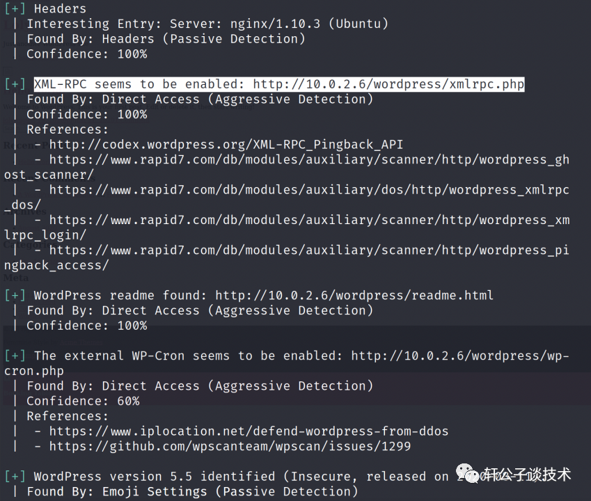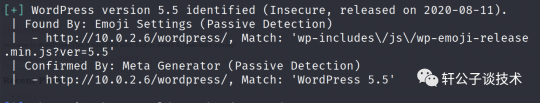 依旧是80端口,依旧是目录扫描,这次发现了使用了wordpress cms,那么可能是远程代码,又或者主题上传getshell,具体是什么样的呢,继续渗透,看看会是那种猜测。