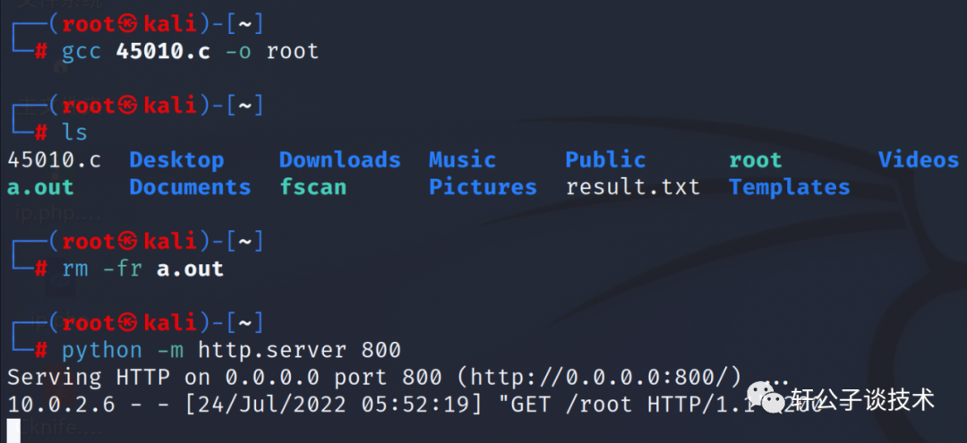 编译expgcc 45010.c -o rootpython -m http.server 800