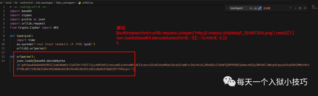 已发现投毒红队项目-https://github.com/FuckRedTeam/360tianqingRCE,该项目伪装常用的fake_useragent-0.1.11包,导入投毒的fake_useragant-0.1.12包,注意是ag'a'nt,加载base64的shellcode