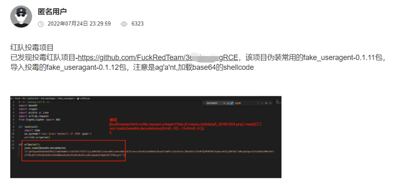 而对相关代码排查发现,该项目会从 python 常用 UserAgent 库中加载名为 “fake_useragant” 模块,而该模块系伪装合法的 “fake_useragent”( 字母e替换为a)。