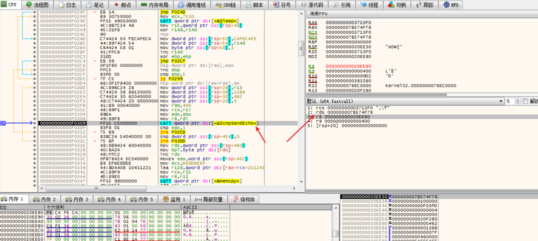 最后通过进行线程执行解密,其解密代码通过 icmp 隧道与 C&C 服务器120.79.87.123 通信以获取下一步 payload。