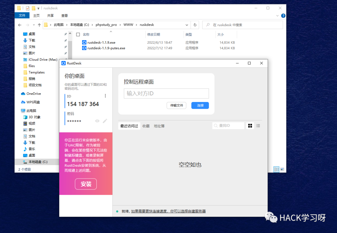 (1)要下载RustDesk的portable版本,不要下载puts版本。portable版本免安装,puts版本会弹框提示安装