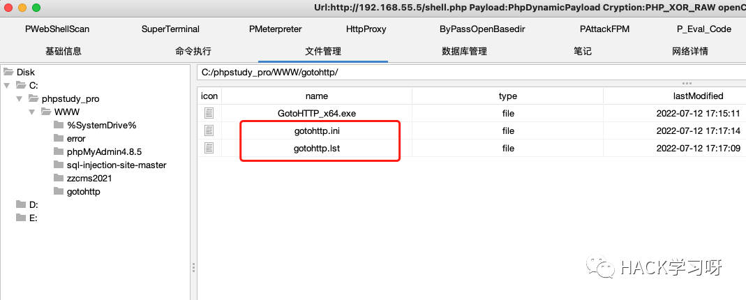 在哥斯拉中,gotohttp.exe目录下直接生成了配置文件
