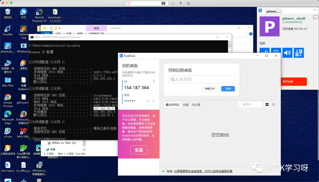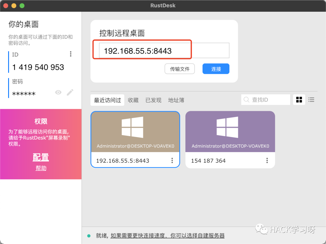 有时候我们打点控了一台跳板机,在内网有一台服务器有webshell权限,但是这台机器又不出网,而且上面装了多个杀软,防护开到最严,你又不知道目标账号密码,这时候你许多操作都会受限,这种场景还是挺常见的。这时候如果能远程过去把杀软退掉可能是一种捷径,而RustDesk就支持在内网使用IP进行直连。
