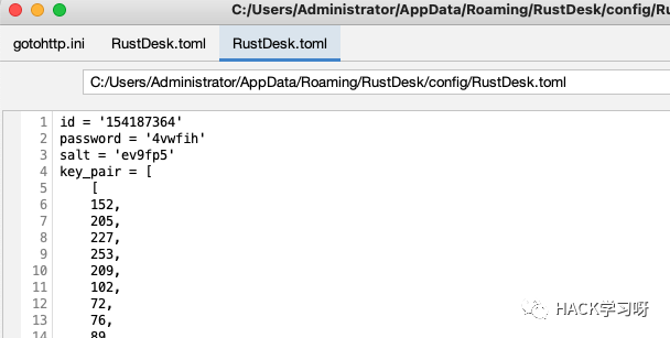 配置文件地址:C:\Users\用户名\AppData\Roaming\RustDesk\config