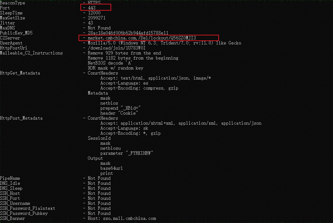 最终解密执行的ShellCode是常见的Cobalt Strike生成的。