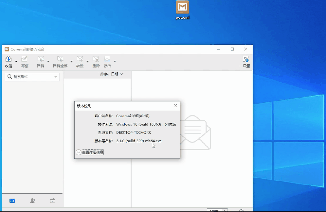 近日,微步捕获到 Windows 版 Coremail 邮件客户端的 RCE(远程代码执行)漏洞在野利用,漏洞利用过程简单且稳定,攻击者可以通过执行任意代码完全控制受害者主机,危害巨大,影响范围较广,我们建议相关政企单位高度重视,并启动漏洞应急流程尽快升级修复,相关修复建议参考处置建议部分内容。经分析验证,攻击者给受害者发送一封精心构建的邮件,当受害者用Coremail客户端打开邮件,即可自动运行邮件附件中的恶意可执行程序,全程不需要受害者点开任何邮件中的链接或附件,打开邮件即中招。