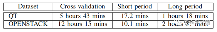 除此之外,作者还对(1)DeepJIT是否受益于Commit特征和代码变更特征、(2)人工提取的特征对DeepJIT是否有效以及(3)DeepJIT的时间消耗进行了实验。这里主要看一下是时间消耗的问题(因为我现在实验就面临着训练一次的时间成本很高的情况),如图7所示。作者是在Tesla P100上训练的.