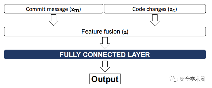 特征联合层的结构如图4所示。Commit的表征向量和代码变更向量被拼接起来,传入全连接层进行特征融合,最终输出一个概率值。