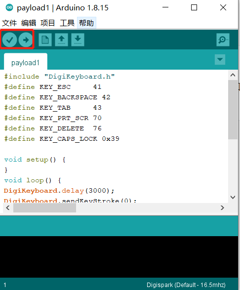 打开arduino,就可以设计badusb插入后要执行的程序了,这块在学习中能了解到,是一块很庞大的知识,利用好了能产生无限可能。想想就相当于badusb插入靶机后,你就在靶机里获得了一个虚拟键盘和鼠标的权限,想开什么端口,反弹shell,或是关掉杀毒软件,防火墙等等,都可以通过编程实现。