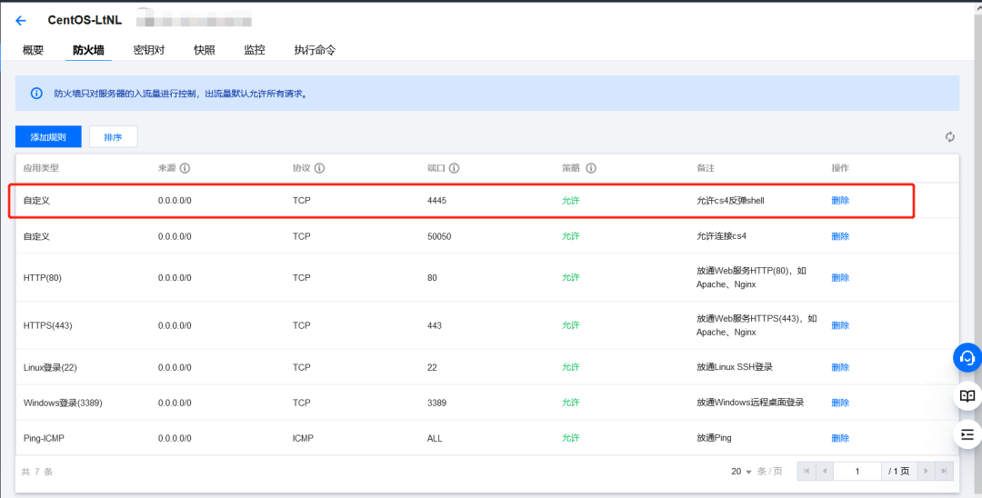然后再在云防护上给这个端口放行,步骤和之前一样,这里我设置是4445,你们可以改成自定的(建议10000以上,端口冲突这个坑我是踩过的),总之保持CS4客户端监听器端口与云防护放行那个端口一致就可以了: