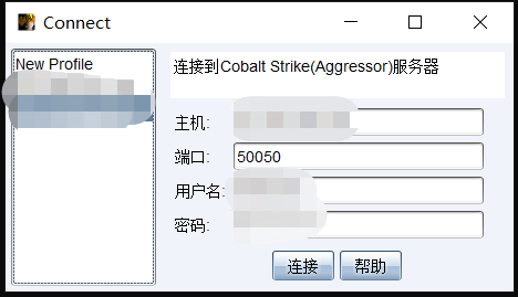主机写VPS的IP地址,端口默认50050,用户名随便输,密码是之前部署CS4服务端时输的密码,要对应,不然登不上: