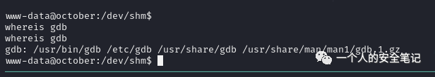 • 获取 EIP 的偏移量 通过本地 GDB 调试计算出偏移量是 112,发现目标服务器上有 gdb 工具,后续我们也可以通过它执行 exploit。