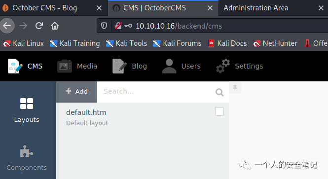 * Default Credentials使用 NMAP 对目标服务器进行开放端口枚举,发现Web服务部署有 October CMS 应用系统,并通过弱口令登录,结合历史文件上传漏洞拿到目标服务器的立足点。