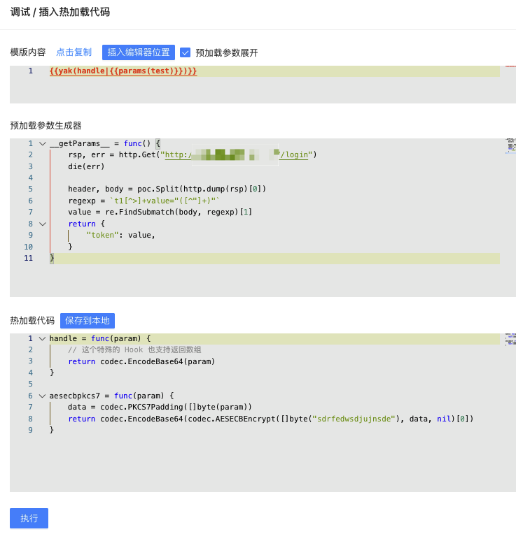 依托于 Yak 引擎内置的动态代码加载能力,我们可以很容易进行预处理,参数预加载,动态代码执行,beforeRequest 和 afterRequest Hook。